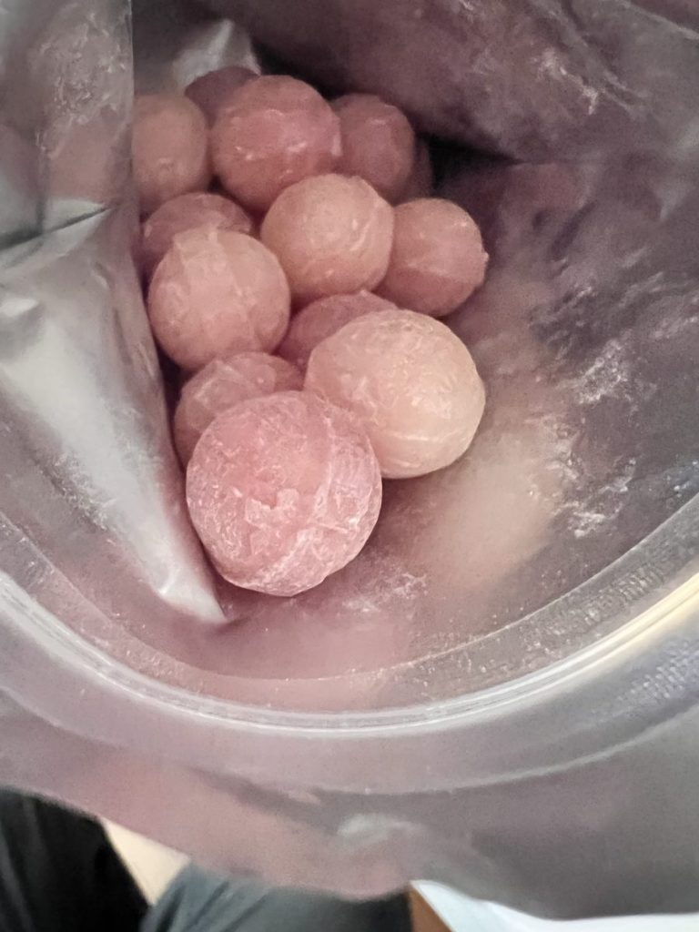 ヨーグルト風味のピンク色で丸い